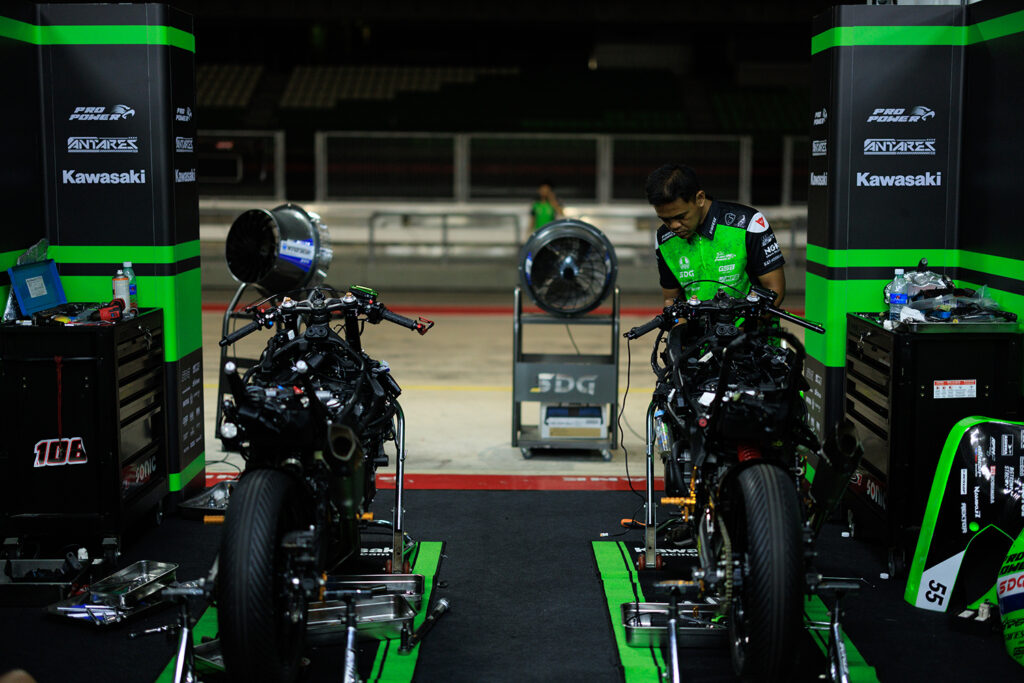 Ninja ZX-25R で参戦は3シーズン目となりましたが、トラブルが続き連日深夜まで作業が続きました